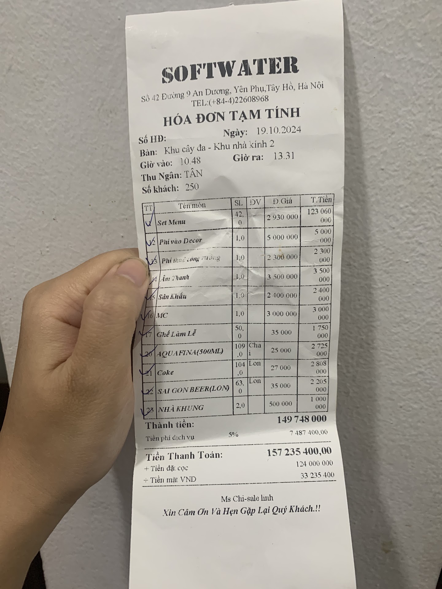 Read moreKhông gian 10 điểm ko có nhưng. Đồ ăn bình thường mức 6 7 điểm. Dịch vụ thì hơi bị chảnh hơi bị thiếu tinh tế. Nhà t đặt tiệc cưới sân gốc đa. Tiền cỗ tính riêng cũng gần 500k/ng mà tôm đông lạnh, nói chung ăn cỡ 6 điểm nhưng đắt phết. Tất cả các dịch vụ khác đều tính triệt để đến từng ngọn cỏ. Ví dụ: Ghế làm lễ ngoài trời 35k/ghế có thắt nơ. Ko thắt thì 20k. Welcome drink cho 250 khách mà cho có 2 bình 5 lit. Refuse tính phí 1.5 củ cho 1 bình nước dưa hấu và 1 bình nước lọc thả mấy lát hoa quả Tiệc cưới bị nắng, charge 500k/ô chê nắng. 2 ô là 1 củ. Nhà t mang trang trí bên ngoài vào, đương nhiên charge phí nên tui hiểu. Tui (chị chú rể) tự cắm hoa để tiết kiệm ngân sách. Lúc tan tiệc có nhờ mấy bạn nhân viên là lát tạnh mưa bỏ vào bao rác giúp c nhé vì c vun lại rồi. Mà mình chị làm từ 5r sáng mệt quá giờ ko có sức. Mấy bạn rất nice bảo vâng c để e thu cho. Rồi cuối cùng t vẫn nhận đc tin nhắn complain là ko thu rác. Trong khi nó quá là nhỏ nhặt. Phí dịch vụ 5% mà so đo mấy cái đó thấy kì :)) Hôm cô dâu chú rể đến làm việc lần cuối thì thấy nhân viên (hình như là đội sales) chởi nhau um lên trong nhà, đến mức các khách đang xem ngoài sân cũng nghe thấy mà ái ngại thay. Cho nên ngân sách thấp thì cân nhắc chốn sang trọng này. Nếu tiền ko quan trọng lắm, cứ đẹp là ok thì chỗ này khá ổn. Khách mời thì rất thích, không gian rất chill, nhưng ng trong cuộc làm việc thì khá khó chịu. Kể mà nhà hàng tinh tế hơn, các gói lẻ gom vào package cưới ngoài trời. Những hạng mục nhỏ như ô che nắng, ghế làm lễ, welcome drink ko thiếu cách để vừa tính cho mình vừa làm vừa lòng khách hàng chứ đến nỗi làm ngta khó chịu khi bị phát sinh chi phí là cực kì ko nên :)) Làm dịch vụ mà ko hiểu là thà mua món đồ 200k freeship còn hơn món đồ giá 150k mà mất 50k...
