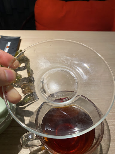 The tea we ordered: the cup hasn’t been washed , and we asked them to bring us another HOT tea.