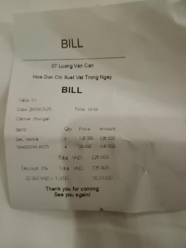 I would not recommend this place, especially to fellow Indians. If you're looking for better options, I suggest trying other Indian restaurants or exploring Grab for more affordable and satisfying choices.