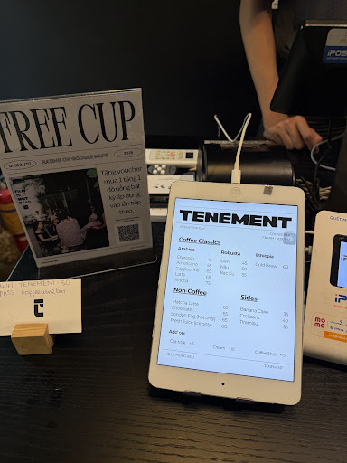 Read moreĐây là lần đầu đến quán và thật sự mình rất hài lòng, chắc chắn sẽ quay lại dài dài =))) Không gian quán khá nhỏ tầm 15-20m2 gì đó nhưng mà mình đến đúng 12h trưa ngày thứ 2 đầu tuần nên khá vắng và rất thoải mái, hôm nào trời mát chắc mình sẽ ngồi ngoài xem như thế nào =)) Trang trí bày biện theo phong cách tối giản, hiện đại, gọn gàng, sạch sẽ, đồ đạc nội thất tone màu trắng đen đúng gu mình, siêu ưng =)))) căn bản cá nhân mình cũng không thích những quán bị màu mè với bày bừa lắm đồ quá, nên như quán này với mình thế là rất ok rồi Nhạc mở âm lượng vừa đủ, chắc chủ yếu là jazz hoặc instrumental, nay mình đến đây ngồi làm việc nhưng cũng không bị mất tập trung lắm, 10 điểm :) Đồ uống mình mới thử Chocolate thì thấy khá ngon, nhưng chắc lần sau quay lại mình sẽ gọi cà phê xem như thế nào vì lướt qua menu thấy quán tập trung vào cà phê là chủ yếu Các bạn nhân viên rất lịch sự, thân thiện, chu đáo, và dễ thương nè, mình ngồi ở quầy pha chế luôn nên có để ý được Giá cả phải chăng tầm 40 60k, cơ mà so với cái mặt bằng ở trung tâm phố cổ HN như thế này thì mình thấy thế là rẻ rùi Có tận 2 khu để xe máy gần quán, ở ngõ 1A với 2C Lê Phụng Hiểu, mỗi lần gửi 5k nhé. Nói chung chỉ cần đi bộ một đoạn ngắn xíu thôi là đến quán, hình như trên ig quán có chỉ dẫn chỗ gửi xe, mn có thể lên đó xem chi tiết. Còn gửi ô tô thì mình chưa rõ để khi nào quay lại thì review tiếp =)) Ngoài ra, kết nối wifi nhanh, có hỗ trợ chuyển khoản nhé Kết luận: quán có vẻ phù hợp với những ai hay lang thang trên phố một mình, ai cần một không gian yên tĩnh chạy deadline, còn nếu đi đông thì mình không chắc có hợp không nhé Nói chung cảm ơn Tenement vì một trải nghiệm tuyệt vời🖤 Disclaimer: mình không phải người quen của quán nên đây không phải bài seeding nhé, những gì mình review là từ những gì mình trải nghiệm trên thực...