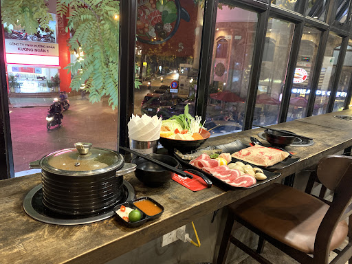 Read moreQuán có 3 tầng lầu, không gian mỗi tầng có sức chứa khoảng 25 người. Quán thiết kế xinh xắn, ấm cúng, có view nhìn ra bên ngoài cũng khá xinh. Nhân viên lễ phép, thân thiện, phục vụ tương đối nhanh nhẹn. Nên book trc và order đồ trước để ra đến nơi được lên đồ luôn. Vì giờ cao điểm quán khá đông. Nước dùng thì không quá rõ vị, suất ăn vừa phải đúng đủ cho 1 người (lẩu một người), một suất lẩu bao gồm 1 nồi lẩu nhỏ 1 người, ăn kèm bò/gà/heo và rau (nấm đùi gà,nấm hương, nấm kim châm, ngô ngọt, rau kiếng, bắp cải, cải thảo, cà chua, đậu phụ, váng đậu). Suất lẩu kèm theo 1 gói mỳ tôm, nếu muốn ăn tinh bột khác thì sẽ gọi tính thêm tiền (udon, miến) . Quán cho thanh toán bằng tiền mặt, chuyển khoản và...