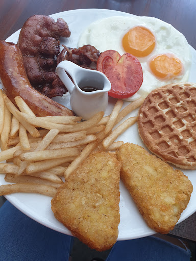Okay - just have a look at this. The hash browns were absolutely amazing and cooked to perfection! The waffle with syrup was great, and the eggs, sausage and bacon were delicious. Seriously awesome spot. In my opinion a lot better than neighbouring places. Service was great with friendly staff who were not only attentive, but also clearly interested in their customers. They asked for our feedback, gave us a free soup (which was so good), and cared enough to constantly check in and make sure we were enjoying the food. Run by people who evidently care about the business, and who are warm and welcoming to their customers. Couldn't recommend more. Thanks for an amazing meal! We will definitely be back very...
