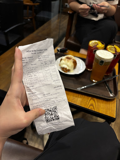 Read moreMình làm người hay ra quán cà phê làm việc, nên mình sẽ đánh giá quán theo góc nhìn của một người đến quán ngồi làm việc nhé ! Không gian: Quán ở chân tòa nhà, nên diện tích sử dụng chỉ nằm ở tầng 1, không gian vừa đủ không quá rộng, các bàn cách nhau vừa đủ để không quá ảnh hưởng tới bàn bên. Quán thiết kế nhiều của kính nên cảm giác không gian rất mở, trong quán bật nhạc nước ngoài thịnh hành khoảng 4-5 năm trước, âm lượng vừa đủ, dễ chịu. Có nhiều loại bàn ghế từ bàn ngồi 2, tới bàn họp nhóm, bàn tròn, bàn chữ nhật, ... Tuy nhiên bàn họp nhóm không có ổ điện đi kèm nên khi cần sạc thiết bị thì hơi bất tiện. Bàn tròn thì nhỏ, bàn chữ nhật ngồi làm việc được nhưng lại xếp 2 bàn sát nhau, dẫn tới 1 người làm việc, bàn bên lại cà phê chém gió thì cũng bất tiện, quán cũng có bàn ngoài trời nữa. Thêm 1 điều nữa là do quán lắp tường kính, trần lại cao, nên tầm 9-10h sáng thì nắng chiếu vô cũng hơi khó chịu. Đồ uống: Đồ uống dễ chịu, và còn có cơ hội mua bánh với giá ưu đãi nữa. Đủ để mình thoải mái khi ngồi làm việc. Dịch vụ: Quán cung cấp thẻ thành viên với ưu đãi giảm 20% cho lần thanh toán sau khá hay. Nhân viên nhiệt tình, mình uống nước xong thì cũng mang thêm cốc nước lọc ra nữa (chắc để tráng miệng, lần đầu mình thấy thế), và cũng hỏi mình về chất lượng đồ uống. Nói chung mình đánh giá quán trên phương diện ng tìm quán cà phê để làm việc là 4/5, nếu quán có thêm nhiều ổ cắm hơn và ban ngày không bị mặt trời...