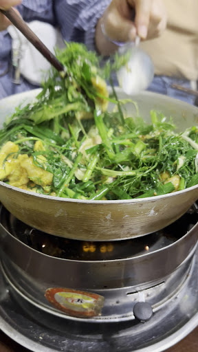 The thick catfish chunks were cooked to perfection in a clay pot in front of us. They were well-marinated in a one-of-a-kind turmeric dill sauce, golden crispy on the outside and tender and juicy on the inside. The fish stomach was cooked to a tougher texture than what we were used to.
