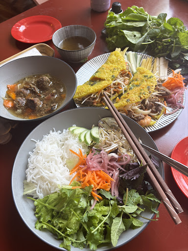 This place was cute and I liked their decor. We ordered bún chả, bún bò Nam bộ. We also ordered spring rolls and salad roll appetizers which didn't come until the end of our meal. The spring rolls were chewy and hard to bite through as if the bánh tráng (wrapper) was too thick or wasn't cooked enough. The salad rolls were not good, and they didn't have any tofu like the menu indicated. It was wrapped in a green leaf and again a very chewy bánh tráng. The salad rolls were an after thought for the kitchen. I ate 1 piece and it took me a couple minutes to chew, my partner ate the other 5 pieces so we didn't waste it. The meals were okay because we like a lot of fresh veggies and herbs, that being said I only got 4-5 small pieces of pork for the meal and it looked nothing like the photo. We initially ordered tangerine kombucha to drink and they said they were out, so I let them know I would look at the menu for a new drink option. 20+ minutes had gone by and no one came back to our table until part of our food order was dropped off, which I then asked for an herbal tea. 20+ more minutes went by and we were done eating and still no herbal tea. I ended up paying and asking to have the herbal tea off the bill. The owner herself seemed friendly, and hardworking, for that I will give 3 stars because in my heart this place was really a 2 star. I personally regret going to this incredibly westernized restaurant instead of going somewhere all the locals eats. ₫265,000 total, so far our most expensive and unfortunately, our worst meal in...