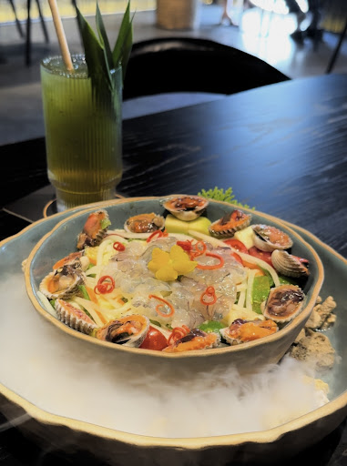 Read moreThật sự thì đi ăn theo review của các KOCs được thuê. Không gian nhà hàng rất đẹp, decor món ăn rất tinh tế nhưng mà trải nghiệm của mình thực sự rất tệ. Ngồi vào bàn bạn sẽ cần mất ít nhất 10-15p để được phục vụ món soup tomyum khai vị - và theo như trải nghiệm của mình thì thực sự không quá ấn tượng. Suất đầu tiên mình gọi thì bị mặn, mình có nhờ nhân viên báo cho nhạt đi giúp mình thì các bạn mang ra một suất nước soup được đổ vội nước xương hoặc nước nguội, lạnh ngắt.