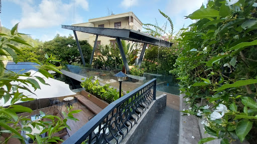 Quán nằm ở vị trí cực kì lý tưởng, vốn là nhánh vườn cũ của ks Hưng Thịnh (bây giờ là Lake Hills). Cảnh quan nhiều tầng, nhiều cây xanh, gìn giữ tương đối, thêm mái nước tạo cảm giác mát mẻ, tuy vậy khi nắng nóng cao điểm vẫn sẽ thấy khó chịu, tầm 10-12h trưa ra không thấy mát, không có dàn phun sương hoặc cây leo nên thực ra nhiệt độ ít được cải thiện. Có đàn piano ở tầng trên cùng tạo cảm giác sang chảnh lãng mạn, tuy nhiên khi check thì ít nhất 4 phím hỏng. Do nóng và đông khách từ trong ks ra uống, cho nên ai quan tâm nên đặt chỗ và ra lúc tầm tối, có một chút view hồ và quang cảnh cầu kỳ, tuy vậy để ý là hơi ít góc riêng tư. Phục vụ khẩn trương, thân thiện, nhẹ nhàng do có anh quản lý khách sạn quá trực tính và hay quan sát. Có lối đi ngách sang khách sạn Lake Hills ở tầng trên cùng dẫn sang bể bơi bé cũng khá hay do bụi hoa được giữ gìn tốt và hương hoa rất thơm (mình đi cuối tháng 6, đầu tháng 7).