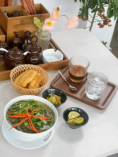 Mình đã ăn thử và cảm nhận đầu tiên của mình là nước phở trong có vị ngọt thanh không có mùi gây của bò, phần thịt đc xào qua nhưng rất mềm. Đồ uống thì mình dùng thử cafe VieThin thấy rất ngon phù hợp với chị em phụ nữ, không gian quán sạch sẽ, thoáng mát và trang trí rất đẹp. Nói chung một bữa ăn...