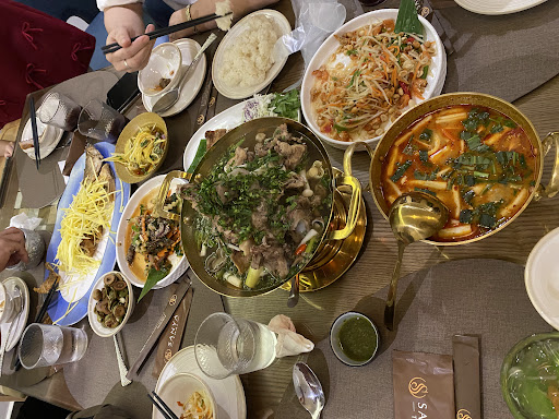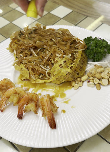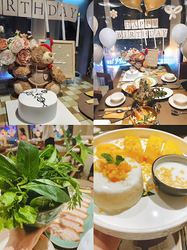 Read moreVị trí: Bất tiện để đỗ ô tô, phải đỗ cách nhà hàng 1 đoạn. Không gian: Rộng, đẹp, thiết kế có đầu tư, có phòng riêng cho gia đình. Gia đình mình tầm 17 người ăn ở phòng Pattaya. Ghế to nên kê sát nhau, khá bất tiện di chuyển. Thang máy rất chậm, có thể đi thang bộ cho nhanh. Nhân viên: Đông, ngoan, nhưng chắc do đông khách nên chưa hiệu quả lắm. Gọi nước, gọi quạt còn quên. Đồ ăn: Bình thường, cũng giống các nhà hàng đồ Thái khác. Rất chú trọng hình thức, bày trong đĩa to và nặng, hơi chiếm diện tích. Đồ uống: Không có soft drink, bình trà,... Mình đã gọi 1 cốc nước chanh bạc hà, quá ngọt, như cả cốc toàn đường vậy. Còn lại mọi người gọi chai nước lọc uống. Giá cả: Không trả tiền nên không rõ, nhưng từ menu đồ uống giá tầm 60k thì chắc đồ ăn giá cũng cao. Với tiệc sinh nhật, nhà hàng tặng khách 1 chiếc bánh...