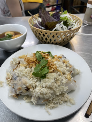 Ordered banh cuon - essentially a rice noodle wrap around pork and veggies topped with fish floss and fried garlic. Dip it in a prepared fish sauce and u can add more seasoning to the sauce as you desire. Really tasty! Best one we've had thus far. Bought by a local to this place. Recommend.