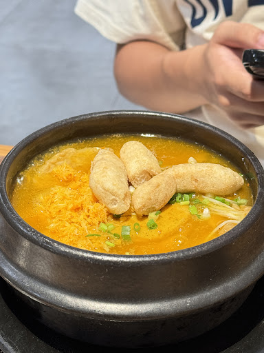 mình gọi bánh canh, sợi bánh canh rất nát, gắp lên toàn bị đứt, súp rất nóng, ko hiểu sao quán lại để vào bát đá, rất lâu nguội ăn dễ bị bỏng, sợi bánh canh còn dính cả xuống đáy bát ăn mất ngon. topping có chả giò, chả cá, 1 con tôm và 1 ít thịt cua. quán mở cửa lúc 10h, mình đến đúng h nhưng nhân viên bảo phải chờ 10p mới có, ngồi 30p sau mới mang ra. nước sốt tràn cả ra ngoài nhìn mất thẩm mỹ. vừa mới mở cửa nhưng lại hết đá, bánh canh ăn thì nóng mà nhân viên lại mang cốc trà chanh nha đam nóng ra bảo mình thông cảm. chả hiểu kiểu gì. trải nghiệm tệ khi ăn theo review, ko giống trên tiktok. quán không gian đẹp còn đồ ăn...