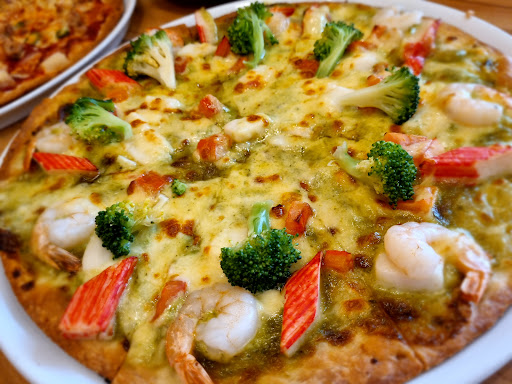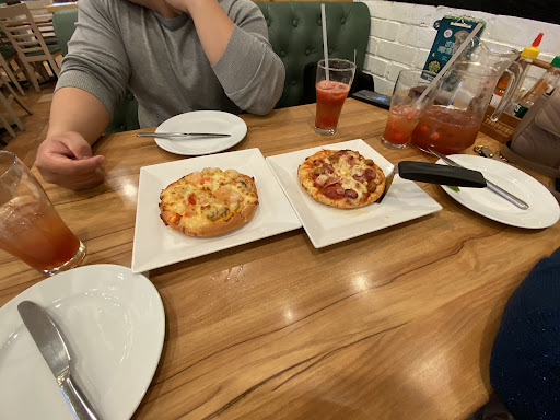 Well.. as an italian/german the pizza size "Large" is like a normal one in europe. If u are hungry make sure to order a "large" one. Dont expect anything special.