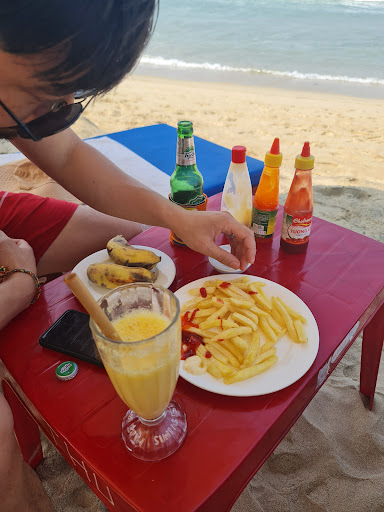 This place deserve the exceptional reviews it has. You can only be too sceptical seeing reviews this good but it’s not an exaggeration. The 3 ladies that own this place are the kindest, friendliest people on the beach. The food was great and came with complimentary fruit plates with each dish. The drinks were a completely reasonable price unlike some of the beach bars further along to the main part. We paid close to £10 for Viet pancakes, fresh spring rolls, fries, 2 beers, a coconut and a Diet Coke.