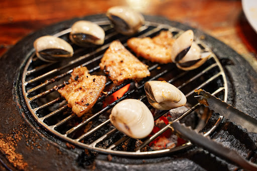 The waitress kindly showed us how to tell when grilled clams were done (they just pop open) - we never BBQed these before so this was...