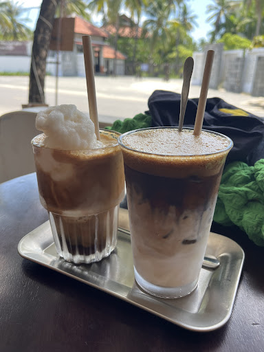 Read more(Picture: coffee on the left is coconut, right is regular coffee with cow milk). Very fancy tourist Cafe. The waiters are really helpful and open to help you with questions. The coconut coffee is the tastiest drink in Vietnam in my dumb Tourist opinion. The one we got here was on the sweeter side, but you can probably ask them to do it less sweet.