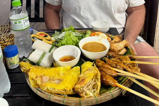Read moreRecommended by our walking tour guide, this is a small local spot just on the fringe of the old town. Popular amongst the locals staying nearby. The owner is super friendly and smiley, and tried earnestly in his limited English, to explain to us how to enjoy the food. They didn’t have any coke light, and went out of their way to get us some. Everyone was so friendly. The food, delicious. The grill is right by the eating area, so be prepared to leave smelly just like the bbq meat you just consumed. The only meat available are pork and shrimp. My friend doesn’t take pork, and the owners were helpful to leave it out of his banh xeo.