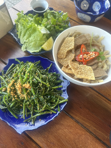 Read moreFor a small, quaint restaurant (5x tables; suited for 1 or 2 people per table at the front section, plus there's also a section at the rear which looks very nice), the food and service are fantastic, and the prices are fairly cheap too. Two of the loveliest, friendliest, and sweetest Vietnamese girls do both the cooking and serving....and all ordered was delicious, served promptly, and of a good quality. I had Banh Xeo (soft version) that comes with the dry rice paper version (ie. you need to moisten the paper for it to become pliable/rollable with the bowl of water provided....not a finger bowl 🤣🤣)), Braised Chicken with Ginger, and the Sweet Banana Coconut Soup for dessert. No complaints for any of it...all thoroughly delicious for a total of 190,000VND. I also had a Strawberry Smoothie and a Pina Colada, which were both OK. They even let me dine inside with my little pet dog. (NB; For those that despise Coriander [like me], beware that the Banh Xeo greens come with it...so ask for the Devil's herb to be omitted - i didn' trealise this, but it was easily temoved and quarantined...
