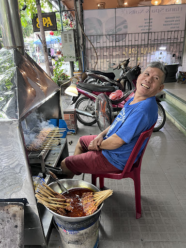 This was our last meal before leaving Hoi An but we really wanted to give it a try since it was recommended by our hotel manager. We are glad we did go since the food was great! Granted we were a bit confused at first since we were the only customers at the time and it looked closed. But the lovely owners fired up the grill and told us to sit down and wait a bit. No one asked what we wanted to order besides the word Barbecue being repeated several times followed buy nodding. A short time later they dropped a big plate with meat skewers on the table. It was a massive portion. We were then shown how to eat it the proper way and dug in. The flavor combination is amazing! We decided to finish the whole plate since we thought we would have to pay for all of it anyway. To our surprise it does not work that way. They bring the big plate to evey table and you only pay for the skewers you actually eat. So much for being lost in translation. Anyway, the food was amazing and you should give it a go if you like grilled meat. Very...