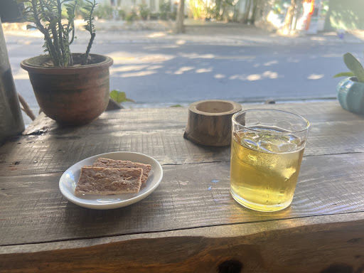 Every cup is made with care. I ordered three iced drinks, and while waiting I was treated to an iced herbal drink and coconut crackers — such a warm and thoughtful touch. The coconut coffee I ordered was spot-on delicious!