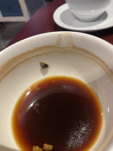 I waited 25 minutes to get served. Finally they bring my coffee. When served, I saw a black thing on the side but i was thinking it was just a little bit of coffee. Ive tried to take it out (like you can see on the side of the cup) but the thing went back at the bottom. Assuming it was nothing bad, I’ve started to drink it and eat my pain au chocolat with it. I started to see the thing floating again… It was a fly. I’ve told one of the staff and she wanted to serve me a new coffee.