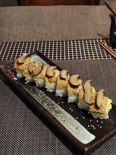 I appreciate that they offer vegetarian options, and I hope they will add vegan options soon. I tried the tofu mushroom sushi, Wakame salad, and Grilled king oyster mushroom. The sushi was good, and the Wakame salad was excellent. However, the Grilled king oyster mushroom was undercooked and quite tough to chew. I had to ask them to cook it a bit more. Typically, these mushrooms should be boiled and then grilled to ensure they are fully cooked inside. Otherwise outside of mushroom will burn not cooked enough.
