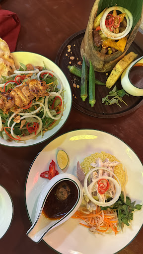 Pretty overrated place, maybe since it’s in Hoi An. We went for late lunch sat on first floor behind chef. Ordered everything from the Hoi A spring rolls, squid ink banh xeo, rau muong (ong choy), squid stuffed meat clay pot, pork skewers, eggplant pot, and sour chicken soup. Honestly from the first 5 secs I saw the chef pull the spring rolls from some frozen store package got worried. They don’t have a deep fryer so everything is fried in their wok with oil. Problem is if you don’t get the right temperature the food gets too greasy. That’s exactly the problem everything with oil we got was exceptionally greasy full of oil from the banh xeo to the ong choy to the spring rolls. The pork skewers were small and quite hard. The eggplant dish I’ve made similarly at home their seasoning and taste was off putting. The squid clay pot was one of the strangest things the squid itself is hard and chewy the sauce is too sweet and weird tasting in that tamarind mix. The soup itself was okay the soup had good flavoring but chicken was pretty chewy. It’s also hot and lot of open flame cooking downstairs so it’s a bit dark and not great ambiance except river was nice outside. The price also was kind of overpriced, I mean 4 mini skewers for 150k dong? Paid over 600k but I guess maybe it’s meant for tourist. The food unfortunately overall was the worst I’ve had in Vietnam they should focus less time on platting to make it look “pretty” and more time on the food, would...