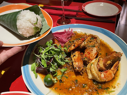 Keeping Flower Ly - huge river prawns with a tasty and generous sauce (which we also used to mix in fresh greens that accompanied other dishes as a salad of sorts)