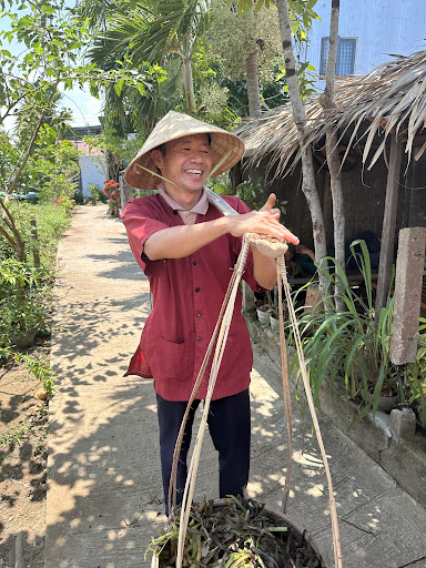 We heard about tours to a vegetable village and decided to visit on our own, hoping to pay directly to a local family and skip the organized tours. We paid 400k per person for a tour of the vegetable garden, a cooking class, and a meal. The tour was quite interesting —we learned about the ingredients used in Vietnamese dishes and even planted some vegetables ourselves. The farm is beautiful and well-maintained.