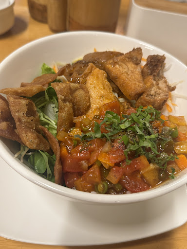 Salsa sauce of tofu bun was extremely salty. Wonton skin was not eatable due to over-fried. Small portion.