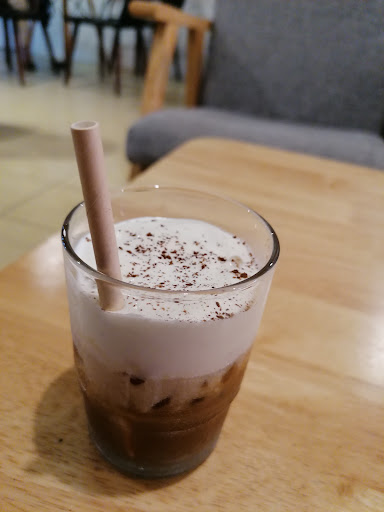 Read moreGreen artificial carpet DIRTY upon entry. Air conditioning NOT keeping the space cool enough (still warm and humid). Told owners to repaint bottom of all walls (filled with cracks and bursting in humidity). Access to toilet NOT CLEAN (Floor cracked, needs repair....or at least put a carpet over the hole). AN OVERALL SENSE OF : "We don't really care for cleanliness....as long as you give us as much money as another "clean place". First and last time for me. (Positive side : cappucino not bad, but cup handle is too small for the overall weight). Chocolate bread ok....but the actual chocolate is HARD TO...