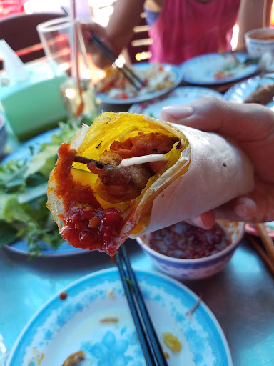 The cons: The food wasn't that great -- oily and not very flavorful, so the sauce ends up being the only strong note. Maybe we've gotten spoiled, but we had spectacular nem nuong at Nem Nướng Dũng Lộc in Dalat (70k for 2 people) and great banh xeo here in Hoi An at Bon Restaurant (39k for a portion this same size). Those two meals were 109K -- this was 240k for two, and not half as good. Which was super disappointing.