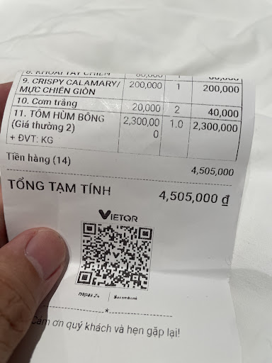 Read moreThe WORST experience I had in Vietnam, we were taken there by a grab driver, after telling us the restaurant we requested was closed due to high winds. It was a very sketchy place, with little to no customers. Food was extremely expensive for even small quantities and they allowed salespeople to come right up to our table to sell souvenirs. The squid was so rubbery that I couldn’t bite into it, the fried rice and barbecue fish were bland and not edible. Overall the cleanliness was incredibly lacking with a literal wooden stick in our water, and an open tiny kitchen. Attaching pictures so you can see what I mean. Beware of fake...