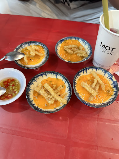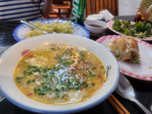 Read more남편과 초등 저학년 아이와 갔는데 잘먹었습니다. 모이레 리조트 근처라 두번갔네요. 음식1개에 평균 2000원(원화)이고 맥주한캔에 800원? 정도 합니다. 오늘 호이안에서의 마지막날이라 궁금했던거+맛있었던거 다 시켜먹어봤는데요. 납작한 라이스페이퍼 튀긴거?랑 노랑밥에 비계없는고기 올라간거 아이가 잘 먹었어요. 계란토마토 스프는 한국의 계란국같구요. 재첩+고수 있는건 한국인입맛에 안맞아서 유일하게 남겼습니다. 고수가 너무많아요ㅋ 그리고 계란반미는 샌드위치같아서 맛있습니다. 고수빼달라하고 주문했어요. 한국의 고추장이 여기있더라구요. 작은 정육면체에 든 투명한 병인데 고추장 맛이에요. 면볶음요리는 라면같아요. 청경채, 새우 들어있습니다. 엄청많이 시켰는데 27만동정도 나왔습니다. 요리만 7개?+음료3개해서요. 한국돈으로 만사천원정도네요. 배 터지는 줄 알았어요. 사장님 가족분들도 저희가 너무 많이 시켜서 다들 모여서 머리싸매고 가격 계산하시는데 귀여우셨어요. 찐로컬 가정식 집으로 가까워서 모이레에 묶는다면 한번쯤 가보세요^^