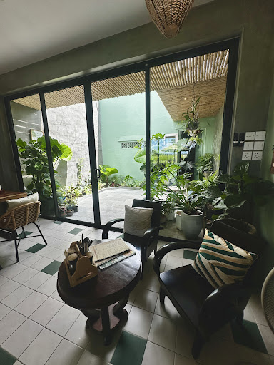 Read moreI'm sitting in the cafe now. It's nice—there's a sign that says "no working." Theres fewer vegetarian options than the name of the place would suggest. There are, however, three women sitting next to us who are the most annoying things I've heard since having a whining baby next to me on a flight. They've just asked for the salmon salad to be served in a large portion—"big portion, you understand? I'll pay an extra 10,000. Make it big."