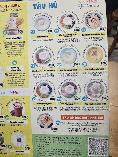 Read moreWe have been coming here everynight since we found this spot. My sister is the one with the sweet tooth and found this place. I dont always like asian desserts because they are not like traditional cakes or cookies. These are more like cold coconut milk soups with various toppings like boba, tofu pudding, jellies, snd these yummy chewy taro type of things. The coconut ice cream is just ok, not enough coconut flavor and the coconut meat is hard to scoop out so after eating the ice cream i ask the staff to scrape it out for me or else id break a spoon before i get the coconut meat. I love the coconut milk desserts with the ice. The ice reduces the sweetness and makes the dish so refreshing. The tofu is soft and is flavorful. I had the egg custard tofu and coconut milk dishes each time. Super cheap yummy cool down snacks. They close at 10pm so...