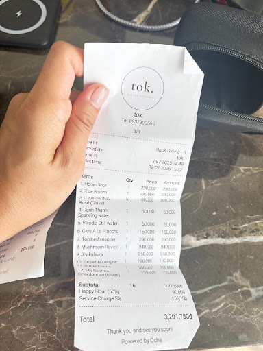 Read moreTok is a new restaurant of the Hoi An scene and is already buzzing ! The pictorial beauty of arriving through the rice fields kicks off the experience - arriving at sunset is even more impressive than at night. Quickly, you enter the restaurant space, beautifully decorated by co-owner Kate, which sets the mood for a elegant & trendy, inside/outside feel. You sit at the perfectly spaced apart tables to begin the meal. The cocktail menu is short but does the job (great twist on the Moscow mule!). And then, the real show begins. Every dish is exceptional, every first bite will cause you to widen your eyes in amazement. This is modern Vietnamese cuisine at its finest, inspired from the world, but true to its origin. The dishes are modern and inspired. Flavours are explosive, perfectly seasoned, and truly creative. Throughout the meal, the service is both attentive and discrete, irreproachable. My only regret is perhaps that there wasn’t bread to sauce up the sauces, which were each more incredible than the next! These impressions get all the more touching when you learn about the owners amazing success story, and what they are building here. Truly kind people, which will make you feel so welcome and at home. I could not recommend this place more. Congratulations, I wish I can come back soon !...