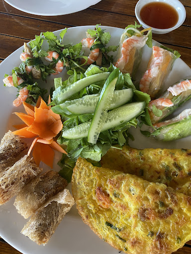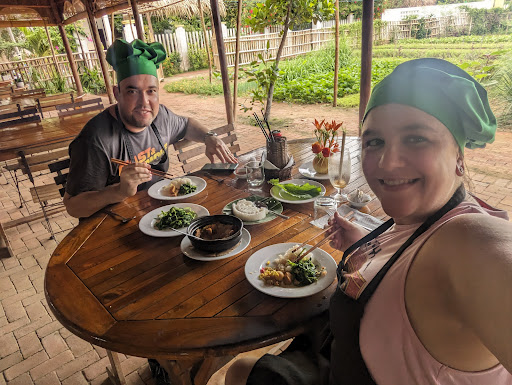 We had lunch here after a morning bike riding tour around the paddy fields and villages. The food and staff were really good. So friendly. The owner and chef is an experienced chef who has worked around the world in 5 star hotels. He is now running a garden to plate, organic restaurant with a cooking school attached. Although we were only there for lunch the team were happy to teach us how to prepare and cook a Vietnamese dish (banh xeo) which was great fun Food prepared by the kitchen was very fresh and tasty. When we liked a particular dish, extra food was brought out from the kitchen because they want...