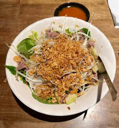 Read moreIf you want to try the typical beef noodle salad, this place got you covered. There's nothing much to do once you get a spot here, besides the Bun Bo there's only a couple of starters you can add to your order if you wish, and in a matter of seconds you're served with your bowl. Honestly, it was delicious, I enjoyed the food a lot. I would just point out that the tables are not cleaned/wiped when customers sit down or leave (but seems like it's pretty much like this in most traditional places in Vietnam), and there's a large trash bin just below every single table that, besides being a convenient option to quickly dispose of any used tissues, makes it feel a bit gross, as you'll be eating just a few inches away from someone else's trash. Anyhow, if you're travelling with an open mind and don't care about these details, I would still recommend this place for...