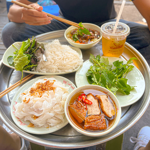The star of the show is, of course, the bánh cuốn. Each delicate rice sheet is steamed to perfection—thin, silky, and slightly elastic—before being gently rolled with a filling of minced pork and wood ear mushrooms. What sets Bà Hoành apart is the balance: the rice sheets are never too thick, the filling flavorful but not overwhelming, and the dipping sauce perfectly seasoned with just the right sweetness, saltiness, and a hint of chili. Served with chả quế (Vietnamese cinnamon pork sausage) and fresh herbs, the dish feels light yet satisfying, making it easy to order a second plate.