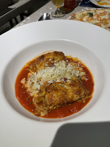The atmosphere is warm and inviting, with a stylish yet cozy interior. It’s a great spot for both casual dining and special occasions. The open kitchen concept allows guests to see their pizzas being freshly prepared, adding to the experience.