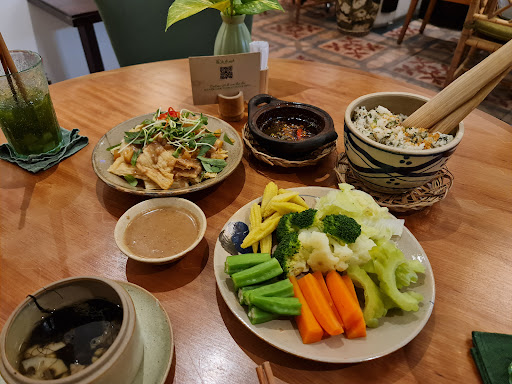 Read moreĐU ĐỦ XANH - NHÀ HÀNG CHAY GIÀU CHẤT ĐIỆN ẢNH Mình thắc mắc liệu có phải nhà hàng chay Đu Đủ Xanh được lấy cảm hứng từ phim điện ảnh Mùi Đu Đủ Xanh (1993) của đạo diễn Trần Anh Hùng không nhỉ? Do tên của nhà hàng khá giống phim và càng đặc biệt hơn khi bước vào không gian nơi đây, mình cảm nhận được phong cách thiết kế đậm chất Indochine. Có lẽ tiền thân của Đu Đủ Xanh là một biệt thự cổ Pháp không cần phải trang hoàng nhiều, chỉ cần giữ nét nguyên sơ, bày trí đơn giản như “nó đang là” thì đã làm nổi bần bật nét hoài cổ vốn có này rồi. Mình đánh giá cao sự đa dạng các món Á đến món Âu trong menu của nhà hàng, ít dùng đậu hũ, không sử dụng nguyên liệu chay giả mặn. Mình rất thích các món đậm chất ẩm thực Nhật Bản, được chế biến thanh đạm, ít dầu mỡ, gia vị và hợp “gu” mình. Tuy vậy, các món ăn truyền thống của các nước Đông Đương vẫn được ưu ái nhất. Mình khá ấn tượng khi lần đầu tiên được thưởng thức Larb chay được biến tấu từ món Lạp của nước bạn Lào (và cũng là của Thái Lan thì phải). Một điểm nhấn mà mình thấy hiếm quán/nhà hàng chay nào có, đó là Đu Đủ Xanh sử dụng các nguyên liệu độc đáo, mới mẻ ít được sử dụng như bún nưa, trái sung, nấm mối, tỏi đen, atiso… Đây đều là các thực phẩm tốt cho sức khỏe như giảm lượng calo nạp vào cơ thể (bún nưa), tăng khả năng miễn dịch cho cơ thể (tỏi đen), trái sung (hỗ trợ hệ tiêu hoá, cải thiện các vấn đề tim mạch), thanh nhiệt (atiso). Một điều cần lưu ý, không phải tất cả các món ăn của Đu Đủ Xanh là thuần chay, sẽ có một số món có sử dụng trứng, sữa, phô mai. Nếu không dùng các chế phẩm từ động vật thì bạn nên đọc kỹ thành phần các món ăn nè. Giá cả của Đu Đủ Xanh tuy có hơi cao một chút nhưng mình thấy xứng đáng vì những giá trị mà mình được nhận sau khi trải nghiệm...