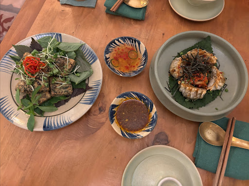 The Bánh hơa was one of the best starters I’ve ever had!! I’d go back just for that alone. The Ni dẹt sốt Từ Xuyên lạnh was also amazing. From my experience I would say the starters / appetisers is where they excel. The interior was lovely - nice paintings and colours. Service was very speedy and attentive. I wasn’t a huge fan of my main (the Tâu hủ ky sốt chao) but that’s on me and isn’t their fault. However, they could have offered to take it off the bill / try something else or anything like that when I said I didn’t like it. But anyway, not the end of the world! Atmosphere wise, I’d recommend putting some low music on as it felt a little stifling in the quiet. But again that’s just...