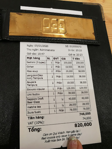 ย ย ย Read moreGood quality raw fish but totally overpriced. This is Vietnam, yes I know it's Saigon D2, but it's not downtown Tokyo, London or Paris. Furthermore, they served me squid as the third fish in the sashimi trio along with salmon and tuna, instead of the yellowtail pictured. I complained and got it exchanged along with a lousy excuse. I know you did it to maximise profit but one really shouldn't have to complain. It's unpleasant to have to be vigilant at all times, and complaining doesn't aid digestion. Besides, the menu is designed in such a way that you think you'll get a big portion but then it's really small (pictures vs what you get). Very blunt! To top it off, waitress is overly eager to remove dishes even with garnish still on them that one might want to eat, and she lurks annoyingly close behind one, waiting to make her move. Unpleasant. At the price, as you pretend to be a genuine Japanese sushi place, please teach your staff Japanese discretion. Finally, I also missed the shichimitogarashi (chili-based spice mix that's a staple in ANY Japanese restaurant... but not in this one). I certainly...