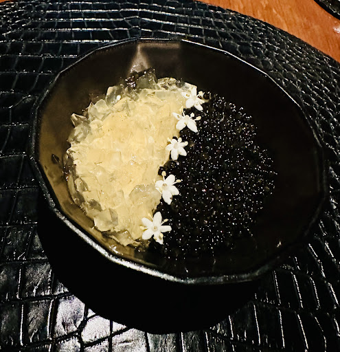 I will give credit where it is due, the presentation of each meal was excellent and the staff were lovely, however i attend dinner to enjoy my food and enjoy i did not. Dinner started with a palate cleanser of biblical proportion, my wife was left looking confused by the 3 options served upon what i can only describe as a deconstructed vietnamese hat. The first course was confusing to look at, however the best tasting of the night, an egg yolk presented in it’s shell, with caviar and cream fraiche, tasty, yes, confusing, also yes.