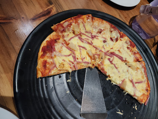 I'm sorry to have to post this, I usually won't post negativity unless it is warranted. We sat down, and 40 minutes later, the group next to us had their pizza. They had only been seated for 20 minutes. When we asked the server what the issue was, we were told that something got stuck in the oven. They compensated us with some garlic bread. I can say that this location needs training and customer service skills. The location in District 2 Thảo Điền is a much better run location. We were also told that the combo specials that were so brightly posted on the walls were not available because it's Christmas Eve. This might be their policy, I am not sure. But it seems intelligent to post that on the signs with just a sticker for the days affected. The French fries were the highlight of the meal. Crispy and hot (simply awesome). The pizzas were okay. The large thin crust Hawaiian pizza had so few pineapple pieces that I could count them on one hand. The 4 cheese pizza was better. The highlight was seeing one of the employees wearing his hat sideways. That actually symbolizes the way the location was run on this day. With that said, it could be a one-off. Maybe they were just not prepared for the level of business they received this day. I will stick with the Thao...