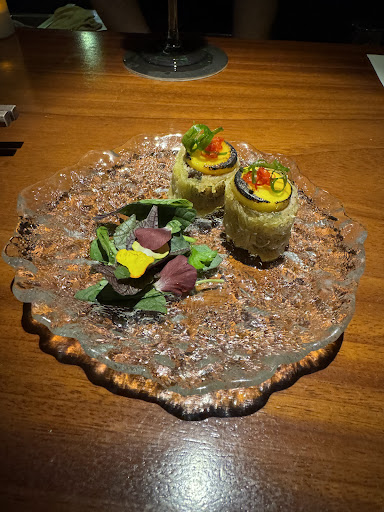 Service: 2/5 stars. We arrived and mentioned we had a reservation for 9:30pm. We were led in by the staff to the bar area, which we were confused about (per my last paragraph). The bartender explained that any course could be served anywhere. Ok, got it. The bar was a bar with more upbeat music playing, people just getting drinks really. It felt odd to have a meal there especially one at this price point, and there were plenty of empty tables we saw on the way up and directly behind us. We requested a table from the server. The server said no and that the table was for four people. We were about to leave as we didn’t really want to eat in that setting, so we requested a table again at which they said no again, upon the third time requesting a table as we were about to leave they relented and sat us a floor below in a dining area. We took our seats and browsed the menu. No water was served while we browsed (minor detail, but not what I expect at a Michelin star restaurant). The serving etiquette was not quite polished. We put in our order. Our drinks came promptly. Shortly after the starters arrived. The timing of bringing the dishes out was good. In our periphery the wait staff was on their phone and joking around with each other, I’m no Karen but again is not the poise and professionalism I typically expect of a Michelin star restaurant or fine dining in general.