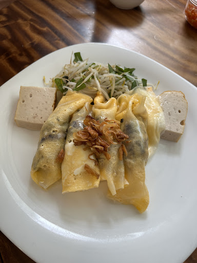 This shop does really, really excellent banh cuon nong and they offer a huge variety of different filling options. Including vegan versions, which I rarely see! They were excellent. We got a vegan combo filling and a pork filled order and both were awesome. I also insist you try the banh dau, this was incredible. The crust was crispy while the bead filling was soft and it was freshly made. Service was fine and Theres some room for motorbike...