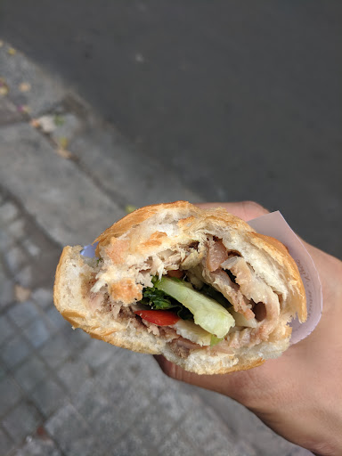 Continuing our food tour from Netflix's Street Food show, we were not expecting much as our previous visits to the places shown in the Taiwan episode were good but did not live up to the hype. As we got out of our GrabCar, we were amused to see our driver immediately order a sandwich before taking off. The menu is only in Vietnamese and the elder gentleman tried to help us but the younger guy from the show came as we struggled to order. He recommended the mixed banh mi which had everything in it (pate, pork pieces, not sure what else). As we waited for our banh mi to be made, we noticed there was a constant stream of locals pulling up and ordering from their motorbikes (always a good sign!) It was 15k and the most delicious banh mi we've ever had. The bread tasted crusty and the overall sandwich had a nice buttery flavor to it. My husband liked it so much he immediately ordered another. If we had more time here we would have loved...