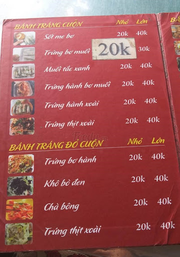 Read more(+) Hương vị: khá ngon. BÁNH TRÁNG CUỐN BƠ MUỐI kết món cuốn này nhất luôn, bánh tráng loại dẻo cuộn trứng và ít muối thôi đơn giản, chấm với sốt chua nhẹ kèm chút bơ beo béo bắt lắm siêu ghiền luôn. BÁNH TRÁNG TRỘN MUỐI ỚT SATE/ TỎI GÀ XÉ điểm hay là bánh tráng ở đây dẻo nên nó thắm vị và ăn không có cảm giác vướng răng, không có nước bò nên không bị ướt đẫm, mình thích khô khô như vậy, loại tỏi hợp mình hơn vì nó không quá dầu mỡ, nhưng có điều cảm thấy trộn thiếu mặn mà dư ngọt so với vị mình xí. BÁNH TRÁNG SNACK PHÔ MAI GÀ XÉ đặc biệt kiểu bánh tráng giòn giòn, có lớp phô mai mặn mặn bao bọc, kết hợp vị khô gà ngọt và bơ béo béo. . (+) Giá cả: hợp lí - tầm 20_40k/phần.. (+) Dịch vụ: mấy cô bán dễ thương. Vệ sinh thì ngồi ăn thấy quầy cũng gọn, đồ ngày nào bán hết ngày đó ok nhưng việc cuốn bánh tráng ngay trên bàn không có mâm khay gì và bằng tay thấy không an tâm lắm. Về phần mấy bạn order deli hay sai mình thấy dễ hiểu à, nhiều món tên hao hao, ngồi đó order còn mà cô bán còn bị lộn huống chi.... (-) Không gian: có bàn ngồi lại, ngoài...