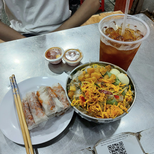 Read moreRead morequán hơi nhỏ, sáng sủa. mình đi 2 ng, gọi: 1 bánh tráng cuộn sốt me bơ nhỏ (25k), vỏ bánh tráng dính vào nhau rất khó tách. nhân ngon, vỏ k quá dai, sốt me bơ ngon. 1 bánh tráng tỏi trộn tóp mỡ (35k), nhìn nhạt nhẽo nhưng đc nêm nếm rất vừa vặn, khẩu phần nhiều. 1 trà tắc (20k) siêu to, hơi ngọt. = tổng bill 80k. khẩu phần ở đây hơi nhiều, mng cẩn thận kẻo đói con mắt, gọi nhiều quá r ăn k hết =)))) lúc đang ăn thì có con nhện trên trần nhà rớt vào tô bánh tráng trộn của tụi mình =)) làm 2 đứa phải bỏ. tuy kphai lỗi của quán nhưng mình có báo lại với quán & đc free tô bánh tráng 🥰 mong lần sau quay lại sẽ k xu v nữa đề đc thưởng thức trọn vẹn tô...
